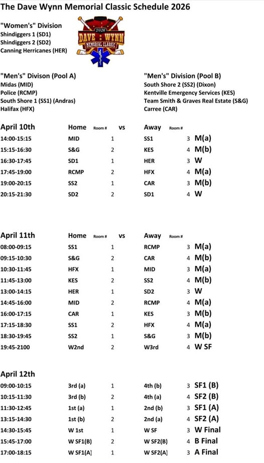 We are pleased to welcome the Dave Wynn Memorial Classic back to the Arena this weekend, April 10 - 12. Join us for this annual tradition of good hockey and fun! The opening memorial ceremony will be held Saturday morning at 10:15am.